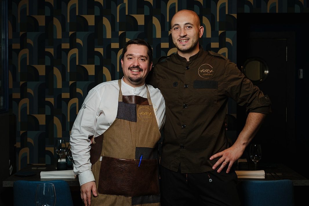 Aura Gastronómica nace precisamente de ese reencuentro. De la voluntad de levantar algo propio donde cada uno pueda desarrollar su lenguaje con libertad, pero desde una base común. Diego en cocina. Álvaro en sala. Dos territorios definidos que aquí funcionan como un único mecanismo.